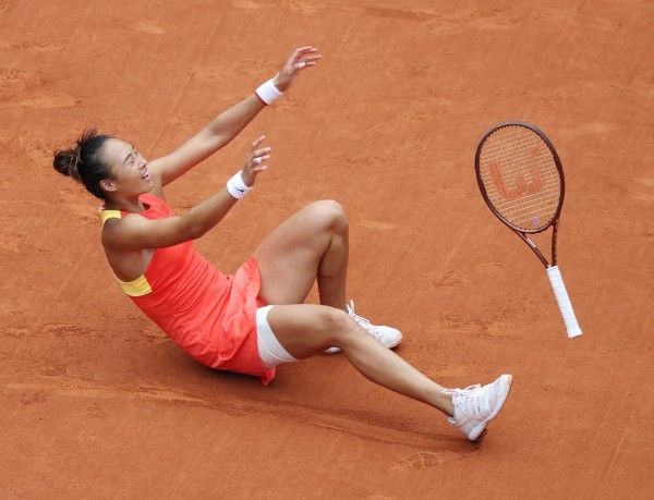 8月3日,郑钦文在巴黎奥运会网球女单决赛后庆祝。新华社记者 高静 摄