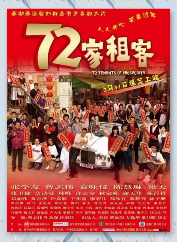 《72家租客》是2010年的贺岁电影,由 邵氏与TVB联合出品,汇集了众多明星。据统计,该片共有170多位明星参演。观众们可以在电影中见到袁咏仪、张学友、曾志伟、林家栋等知名演员,同时还有黄宗泽、胡杏儿、钟嘉欣、王祖蓝等新生代演员的加盟,喜剧效果依旧十分出色。