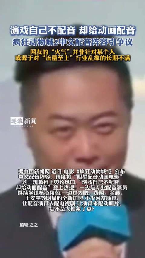 【#疯狂动物城2中文配音阵容引争议#】#明星配音为何正逐渐劝退观众#近日,电影《疯狂动物城2》公布中文配音阵容,再度将“明星配音动画电影”这一现象推上舆论风口,#演戏自己不配音 却给动画配音#登上热搜。一边是专业配音演员继续坐镇核心角色,一边是大鹏、费翔、金晨、王安宇等明星的全新加盟,不少网友质疑:让配音演员去配电视剧,让演员来配动画片,是不是太抽象了点?然而仔细梳理大鹏、费翔、金晨、王安宇此前的作品,他们出演作品的“原声率”其实并不低。这说明,网友的“火气”并非针对某个人,而是源于对“流量至上”行业乱象的长期不满。随着中国动画电影市场的快速发展,尤其是进口动画对本地化传播的需求增加,据记者不完全统计,2015年至今,近十年里,已有超40部中国内地上映的动画电影邀请超90位娱乐圈明星跨界献声。其中,引进片成为明星配音的主阵地,占比过半。可见,在进口动画电影的本地化过程中,邀请有市场号召力的明星进行中文配音,已成为片方默认的营销核心策略。票房压力下,片方往往优先考虑明星的市场号召力,而非声音与角色的适配性。这种短视的流量思维正在反噬行业:当观众因糟糕的配音体验而主动“避雷”时,影院必将减少配音版排片场次,明星配音的营销价值也将迅速贬值。《疯狂动物城2》中文配音阵容引发的争议,就是一次鲜明的市场预警。解铃还须系铃人,要改变争议现状,需要片方、明星和行业共同发力。对片方而言,需打破“唯流量论”,建立科学的选角机制——不是谁红请谁,而是谁的声音与角色更契合请谁;对明星而言,应正视配音的专业性,在缺乏足够准备时主动拒绝“跨界”,避免消耗个人口碑;对行业而言,更应在专业与商业之间找到平衡。(中国新闻网)