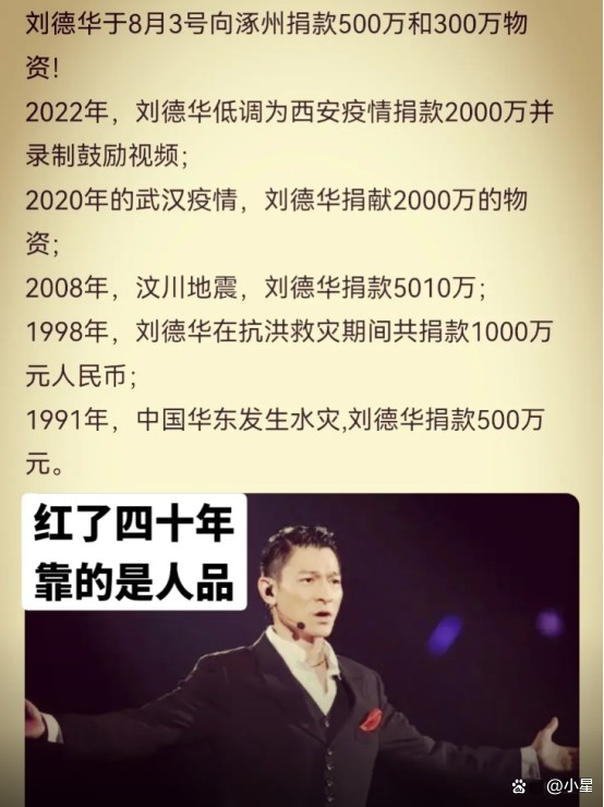 刘德华用他的才华、敬业和人格魅力,诠释了什么是真正的巨星。他不仅是歌手,更是演员;不仅是艺人,更是慈善家。他用自己的行动告诉我们,成功的定义不仅仅是个人的成就,更是对社会的贡献。