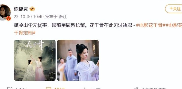 即将要扮演花千骨的新角色陈都灵,在社交媒体上积极宣传新角色的形象,让粉丝们对电影更加期待满满。