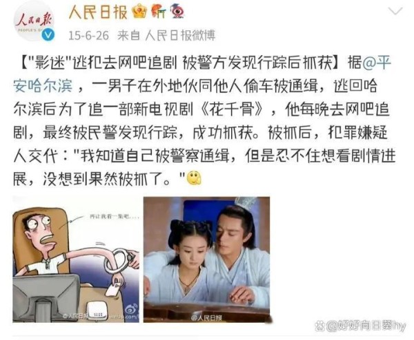 据说,当时还有逃犯因为太想看花千骨被警方在网吧抓捕的新闻。