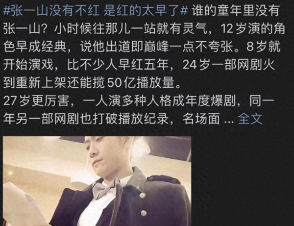 换句话说,张一山不是不红,只是不是“正当红”。