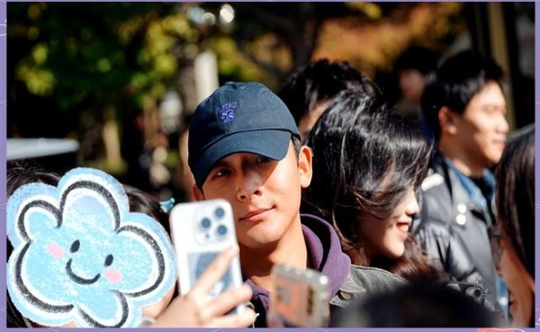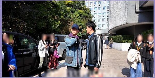 学生纷纷举着手机请求合影,张晚意见状,亲自上前拿起手机,并细心询问:“这样拍摄效果如何?”对于一位身材娇小的女生,他还特地弯腰,以确保她能完美地被拍入镜头中。整个过程中,他并未借助任何助理,尽显亲切与贴心。