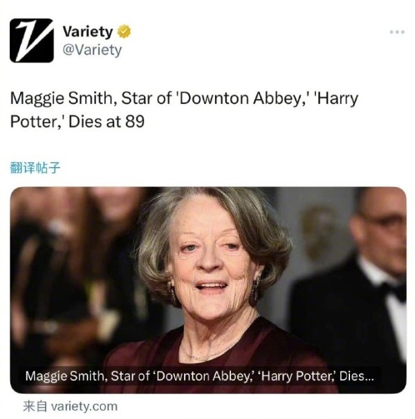 英国著名演员玛吉·史密斯去世,曾主演《哈利·波特》《唐顿庄园》