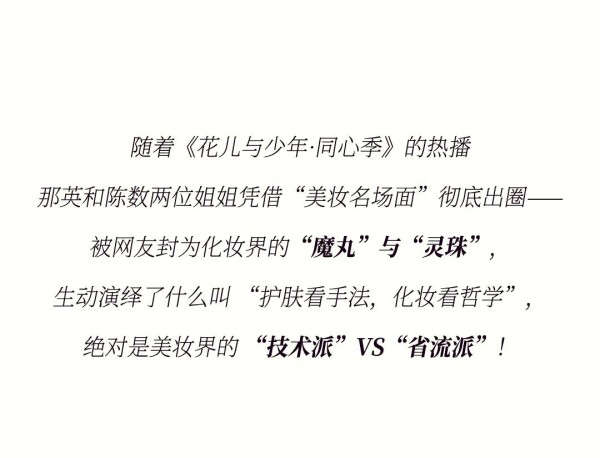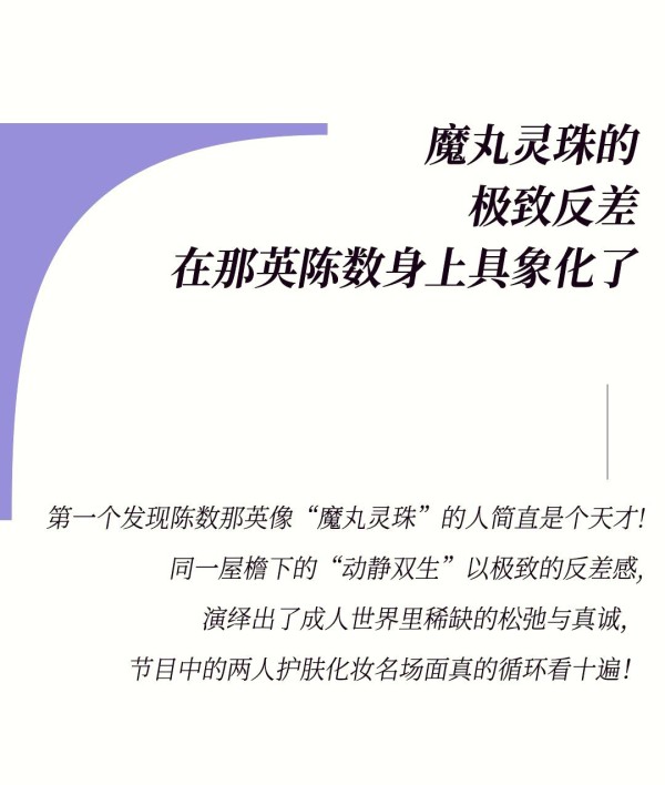 那英与陈数的性格差异活力与稳重,这种一动一静、一火一水的性格差异在她们之间却和谐共存,相互碰撞出奇妙的火花。她们这种毫无保留的相处方式,展现了成年人社交中难得的松弛与真实,引发了众多网友的共鸣与喜爱。同时,两位姐姐也因性格差异而自然形成了两种不同的化妆风格——那英代表着随性而任意的“摆烂美学”,而陈数则体现了慢节奏的“技术流”精致治愈。