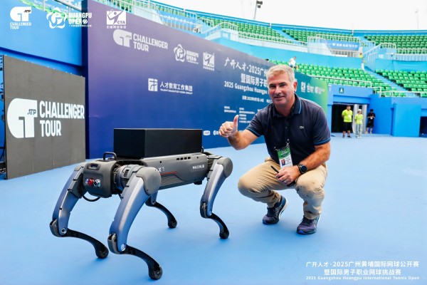 2025年9月14日广开人才·2025广州黄埔国际网球公开赛暨国际男子职业网球挑战赛ATP100迎来激动人心的单打决赛日,2号种子塞伦多洛以6比2和6比3击败6号种子塔比洛,夺得男单冠军。在这场高水平国际赛事中,除了运动员们的精彩表现,一位特殊的“工作人员”——视源股份旗下MAXHUB X7四足机器人惊艳亮相,以其精准可靠的表现,圆满完成了“球童”任务,以灵动的姿态与硬核的科技实力,展现了科技与体育融合的创新魅力,成为赛场上一道亮丽的科技风景线。它也成为黄埔“广东智造”的鲜活代言人,彰显黄埔“体育+科技”的独特魅力。