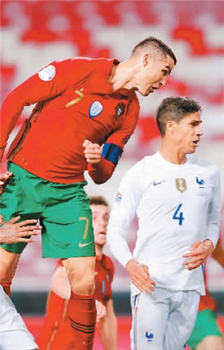 C罗(左)在比赛中攻门。