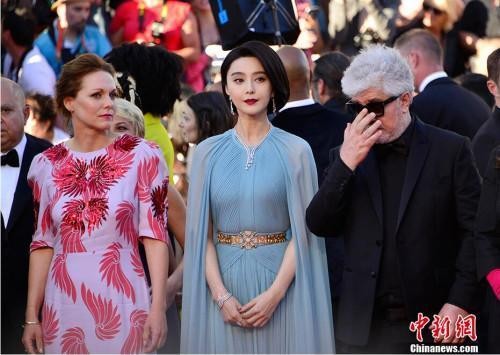 范冰冰今年作为评委亮相,她头顶短发,身穿水蓝色长裙现身,显得颇为端庄。不过范爷并没有获得官方转播的单独照顾,官方镜头拍到的都是她和评审团主席阿莫多瓦一起出现的时候。