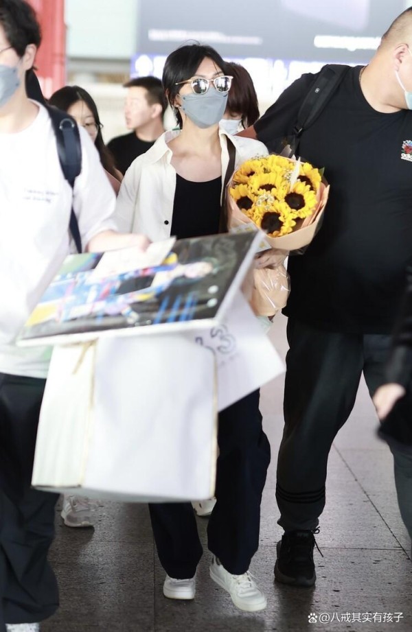 孙燕姿现身北京机场,手捧鲜花被粉丝包围,肖战的偶像人气爆火!