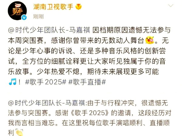 马嘉祺由于实力尚未达到顶尖水平,当初参加《歌手2025》时,不幸成为了资本运作的牺牲品。节目组利用他的人气,将他作为工具并踢走其他几位选手,以此制造话题和争议。鉴于这些经历,马嘉祺自然不愿再次成为突围赛的陪衬,为他人作嫁衣裳。更何况,他此前已经达到了目的,现在演出机会不断,完全没有必要再去自降身价。