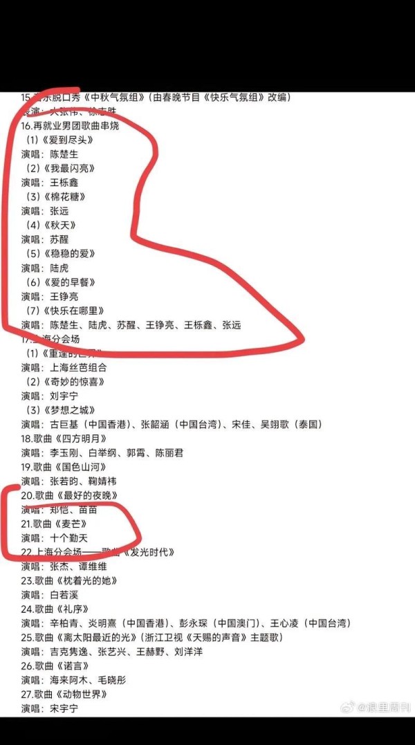 央视“秋晚”遭假唱质疑央视中秋晚会嘉宾阵容曝光,多人人气很高,周深演唱两首歌曲