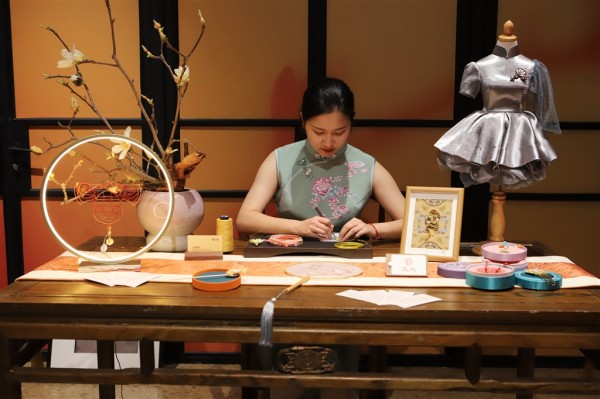 位于张园的首发静安品牌馆内,龙凤旗袍国家级非物质文化遗产第五代传承人吴雨婷端坐在案台前,现场展示手工盘扣技艺。锦蛇纳财盘扣摆件、敦煌宝相花盘扣饰品、樱花季春樱簪和落樱扇等龙凤旗袍的首发新品惊艳亮相,吸引了众人的目光。与此同时,同属开开集团旗下的雷允上西区公司,也带来了张园X允上生活联名款“园香挂”、上影厂联名款“紫气东来蛇年香囊”以及“玉兰瓷花香氛礼盒”等年度新品。