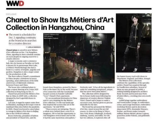 值得一提的是,此次香奈儿计划来杭州首秀的消息,截至发稿,记者在WWD国际时尚特讯中也尚未找到相关内容。