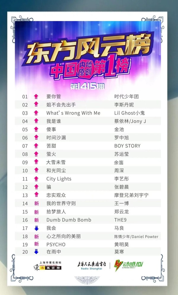 本周榜单的冠军被时代少年团的《要你管》摘得,其独特的态度和腔调,加上旋律的朗朗上口,让人难以忘怀。