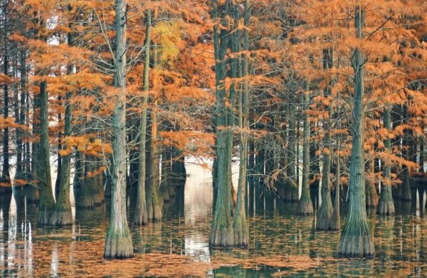 年度名场面!燕雀湖池杉林层林尽染,治愈你整个冬天燕雀湖池杉林:初冬的诗意画卷 初冬限定的斑斓盛景 2025年11月中旬,南京明孝陵景区燕雀湖畔的池杉林迎来最佳观赏期。数十万株池杉与落羽杉在季节更迭中悄然换装,由盛夏的浓绿渐变为青绿、橙黄、绯红与深红交织的斑斓色彩。湖水如镜,倒映着树影与远处明孝陵的红墙黛瓦,构成一幅浑然天成的初冬画卷。这一“金陵限定美景”不仅吸引大量本地居民与外地游客纷至沓来,更在抖音、今日头条、微博等社交平台持续走红,相关话题阅读量突破5000万,成为今冬最受欢迎的打卡胜地。 湖畔森林的生态渊源 燕雀湖古称“前湖”,位于明孝陵南侧,与紫金山隔水相望,是南京城内罕见的天然湖泊。其湖畔近百亩的池杉林,源自上世纪七八十年代为改善生态、涵养水源而开展的引种工程。当时景区工作人员选种了耐水湿的池杉与落羽杉,历经四十余年的自然生长与人工养护,终形成如今疏密有致、气势恢宏的水上森林,成为城市中难得的生态瑰宝。 色彩变幻的自然韵律 每年11月中旬至12月初,随着气温下降与昼夜温差加大,池杉叶片中的叶绿素逐步分解,类胡萝卜素与花青素相继显现,树叶由绿转黄,再渐变为绯红与深红。这一过程宛如大自然的调色板,每日呈现不同风貌,真正实现“一日一景,步步皆画”。 晨光中的诗意时刻 清晨七时左右,薄雾轻笼湖面,池杉林若隐若现,宛如仙境。初阳穿透雾霭与枝叶,在湖面投下斑驳光影,随微风荡漾,恍若童话世界。叶片上的露珠在阳光照耀下晶莹闪烁,更显色彩明艳。此时,众多摄影爱好者早已守候湖畔,静待捕捉第一缕光线洒落林间的绝美瞬间。