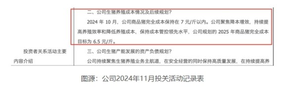 据巨星农牧方面称,截至10月份,公司商品肥猪完全成本约为6.1元/斤。记者注意到,这较公司2025年上半年“6.16元/斤”的水平进一步下降,较2024年同期的“7元/斤”大幅下降了近13%,且已大幅领先公司规划的“2025年商品肥猪完全成本6.5元/斤”的目标。