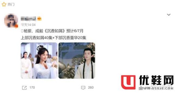 网上又有娱乐博主传出消息称由杨紫和成毅主演的电视剧《沉香如屑》将于六月或者七月播出,同时这部剧分为上半部《沉香如屑》和下半部《沉香重华》,上半部40集,下半部20集。