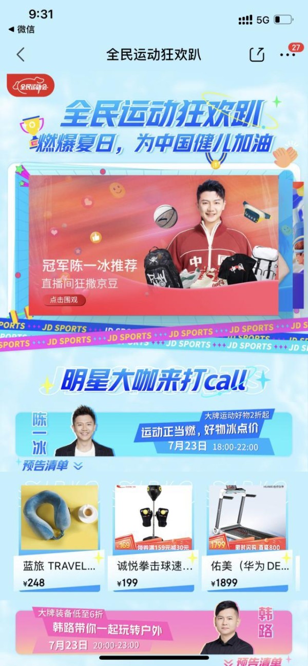 京东全民运动会来了!陈一冰、张继科直播助力,为赛事激情打call