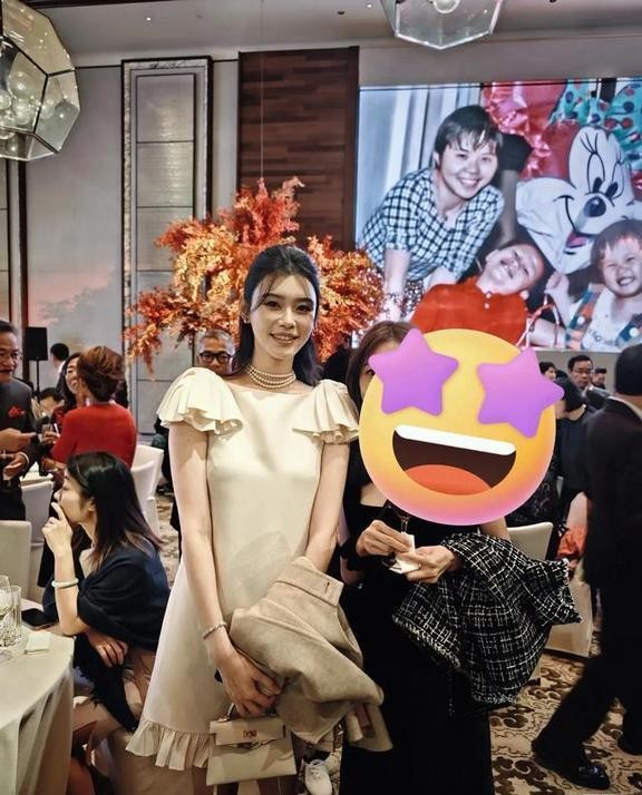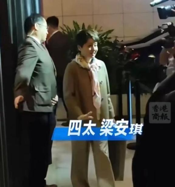 另一位名流——赌王的四太太梁安琪,虽然岁月已在她身上留下痕迹,但她的气场依然强大,她穿着一双简约却灵动的运动鞋,脚步轻快,带着儿子何猷君和媳妇奚梦瑶一同赶到,奚梦瑶身穿带荷叶边的萌萌裙子,手里提着一款小巧的爱马仕包,脖上挂着三层珍珠项链,眼里的欢喜愈发显得像是一位豪门媳妇应有的魅力