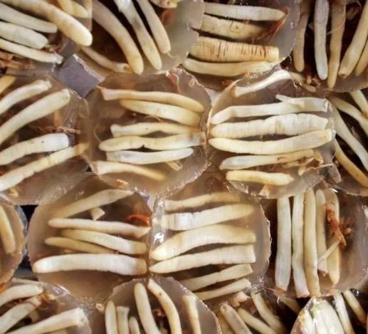 土笋冻基本上是在福建大街小巷随处可见的小吃之一,很多人光听名字以为是竹笋之类制作的,拿到手上发现里面全是虫,根本下不去口。其实这个土笋不是土笋,也就是我们常说的沙虫,生活在海滩上,形状细长像蚯蚓,碗里密密麻麻的虫子非常吓人,很多人光是看见就不敢吃了。但是吃过的人都说土笋冻是美味,因为加工熬制时,土笋中具有大量的胶原蛋白,自然冷却后吃起来滑嫩爽口,Q弹清香,再配上一点辣椒和萝卜丝,一口一个别提多香了。
