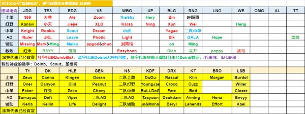 LPL转会消息汇总图,17支战队全部列出,RNG还是融资成功