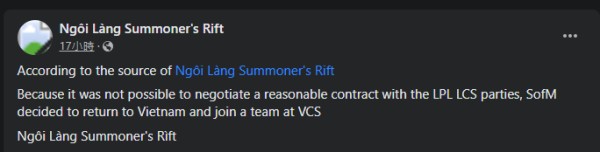 来看看另外一位越南野王SofM的动向,SofM未婚妻之前透露SofM收到了来自LPL、LCS和VCS的合同,但越南媒体爆料SofM未能和LPL以及LCS赛区的队伍在合同问题上协商一致,因此这位越南野王将在下赛季荣归故里。明年S赛不会看到SofM带领越南战队送走LPL吧?