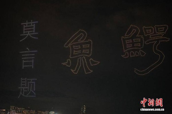 图为无人机展现的莫言亲笔题写的“鳄鱼”二字。 (主办方供图)