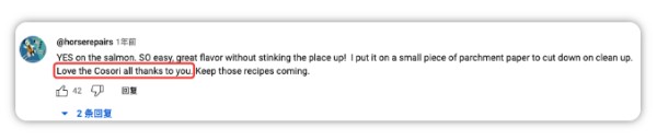 酒香也怕巷子深。有了深度洞察消费者需求的优秀产品,Cosori选择与头部美食红人合作推出“种草”视频,来向消费者直观展示Cosori空气炸锅使用的实际效果。