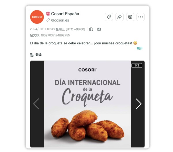 比如“炸丸子”是西班牙最受欢迎的小吃之一,甚至1月16日还是世界炸丸子日。在这一天Cosori的西班牙主页就推送了炸丸子食谱来与当地消费者共同庆祝。