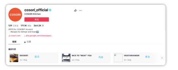 除了与各类红人合作推出“种草”视频,在Cosori自己的主页上其也通过发布简单实用的食谱拓展Cosori的使用场景、向消费者持续展示Cosori的实用和便捷。