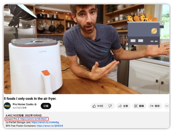 在这个20分钟的视频中,Pro Home Cooks完全使用Cosori的空气炸锅详细介绍了5种空气炸锅美食的做法,并且在视频的开头、结尾以及简介中都介绍了Cosori Pro 2产品。该视频最终获得9.9万赞和2400+评论。