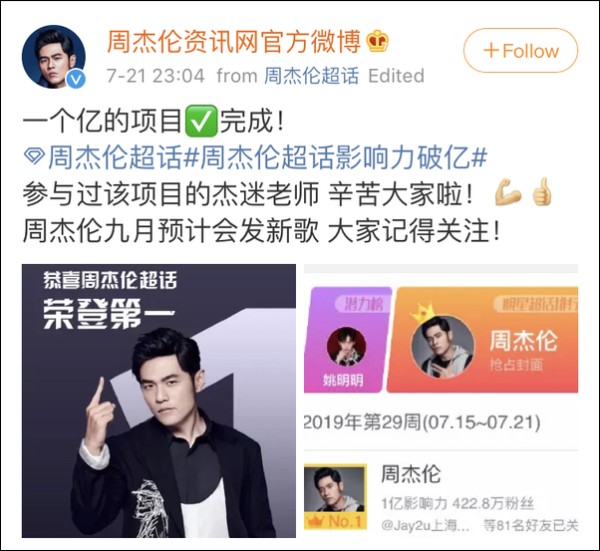 周杰伦超话影响力破亿,粉丝的力量究竟有多大?