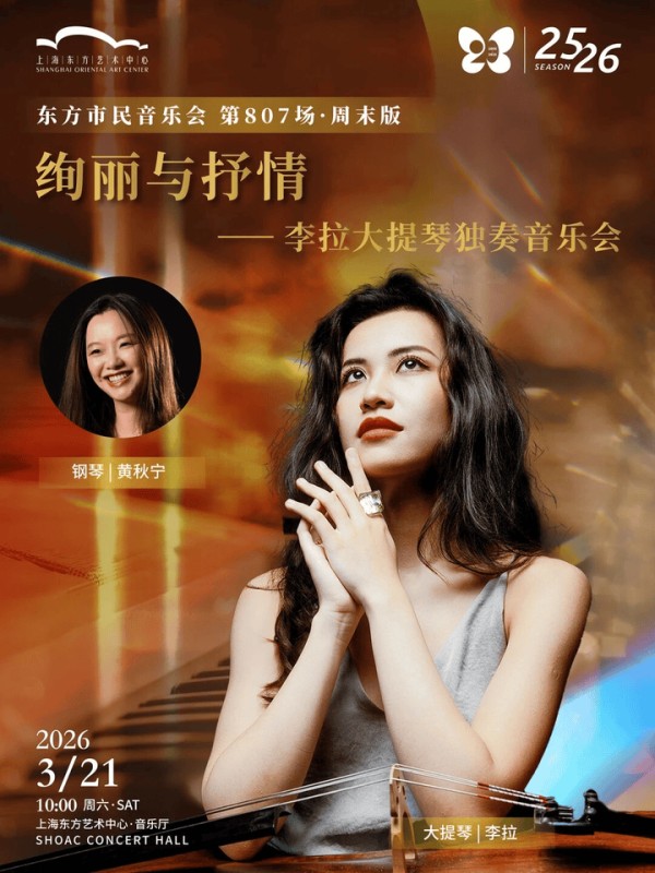 3月21日,人气青年大提琴家李拉携手钢琴家黄秋宁,演绎普罗科菲耶夫、肖斯塔科维奇等作曲家的高难度大提琴作品,呈现“绚丽与抒情”的独奏盛宴。