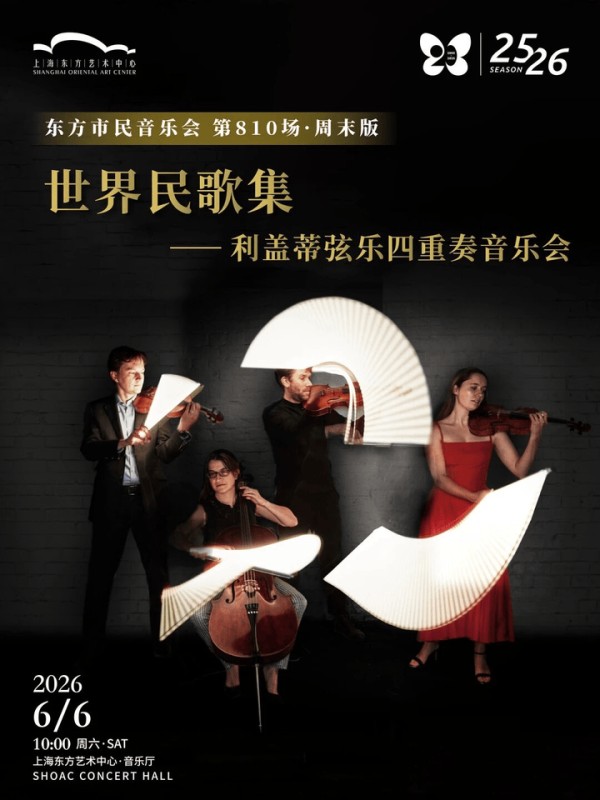 6月演出收官之作亮点十足:6日,享誉世界的利盖蒂弦乐四重奏带来“世界民歌集”,呈现《赛马》《戈壁落日》及利盖蒂《第一弦乐四重奏“夜的蜕变”》,曲目丰富多元。