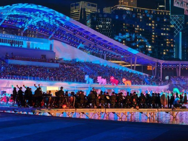 据了解,此次深圳交响乐团派出了61人的编制阵容参加闭幕式演出,并联合中央民族乐团压轴登场,两支国内音乐劲旅分立于水中舞台的两侧,在深圳交响乐团团长、音乐总监林大叶的执棒下,以中西合璧的形式担纲《不忘初心》主题曲的演奏。此外,在火炬熄灭环节,7名深交大提琴演奏员与来自其他地区的8名演奏家一道,带来大提琴重奏氛围曲演奏,为这一全国瞩目的庄严时刻赋予了典雅而浪漫的艺术氛围——舞台上,璀璨夜色与海面淋漓波光相映,现代化的城市夜景与管弦乐交融,共同为这场近半个月的文体盛宴画上圆满句号。