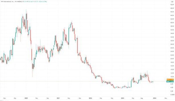从近两年的股价表现,也能看出即便GLP-1减肥药的使用说明中包含了“配合运动以及饮食管理”,但体重管理平台的股价依然受到严重冲击。