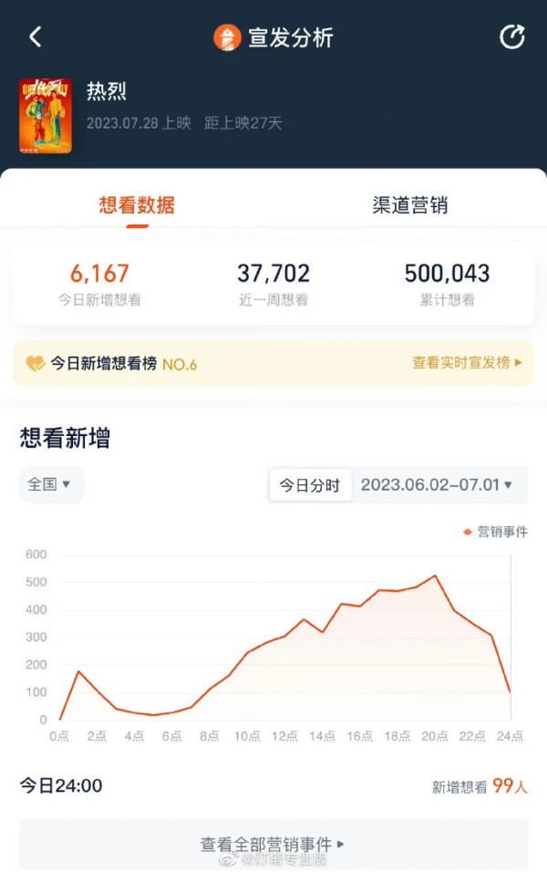还有由大鹏董成鹏执导,黄渤、王一博领衔主演的影片《热烈》淘票票想看人数突破50万,将于7月28日上映。