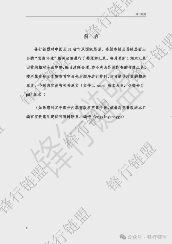 【锋行链盟】2024年6月中国及31省市营商环境政策汇编