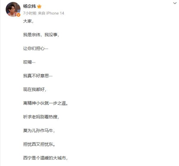短暂昏迷!歌手杨宗纬从2米高舞台意外跌落,凌晨发文回应杨宗纬摔下2米舞台短暂昏迷,西宁现场紧急送医