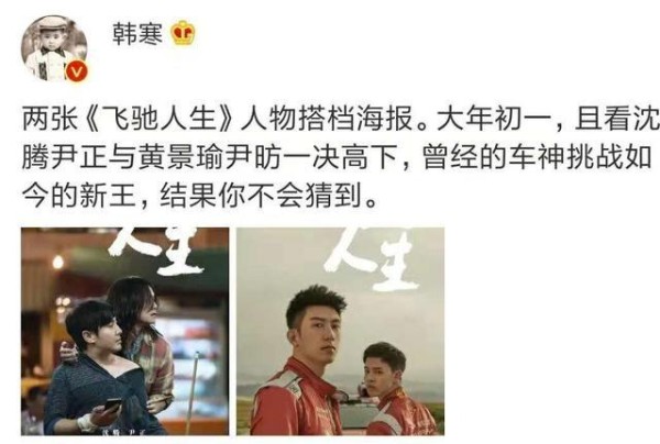 韩寒官宣《飞驰人生》人物搭档海报,沈腾小露香肩黄景瑜霸气侧漏韩寒执导《飞驰人生2》定档大年初一上映:沈腾、范丞丞主演