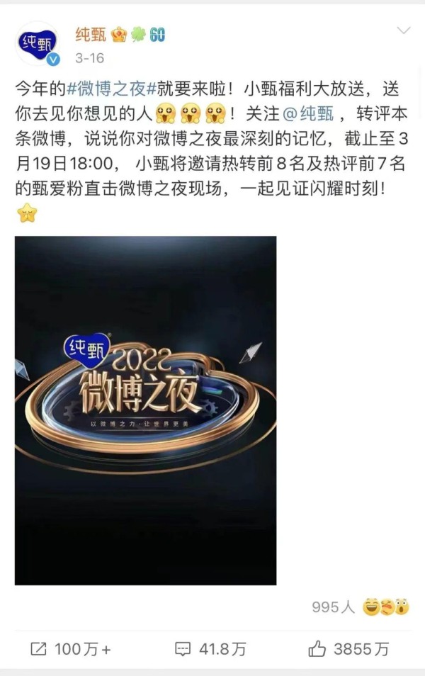 有这样的基数,还有微博之夜这种集中式、大幅度曝光轻松实现跨圈层辐射。试问哪个品牌能不心动?