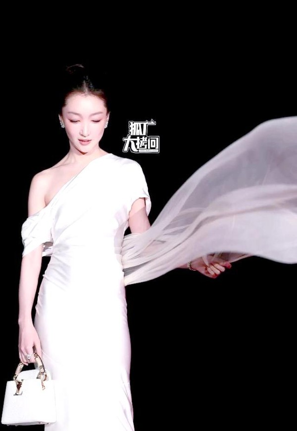 周冬雨身着一袭白缎长裙,简约而不失优雅,虽无亮片刺绣的点缀,却凭借肩膀线条的流畅设计,轻松赢得全场瞩目。