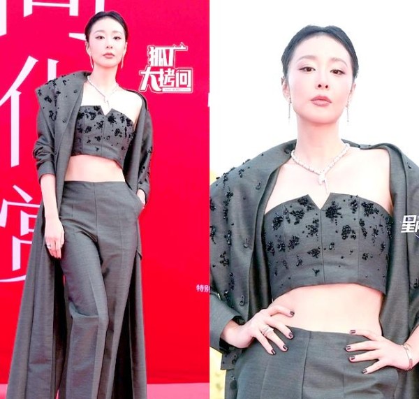 现场摄影师表示,当周冬雨走近时,灯光恰到好处地映照在她身上,她那流畅的肩膀线条与锁骨投下的影子巧妙结合,与领口的弧度共同构成了一个完美的黄金三角形,充分展现了其优越的骨相美。