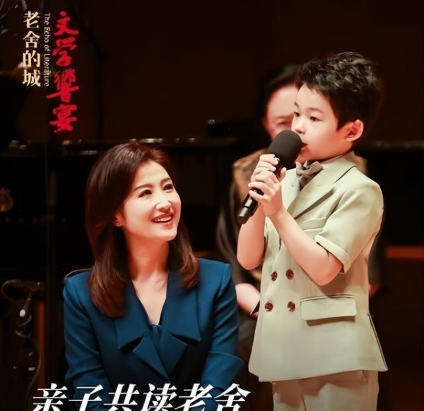 那天我看那个节目,他带着妈妈一起上台朗诵老舍的作品