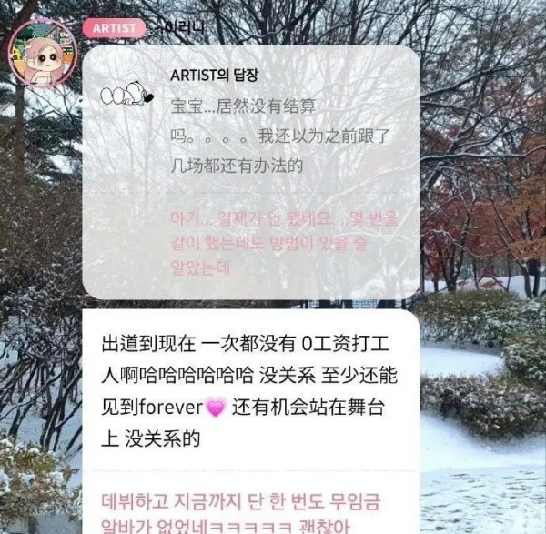、“连像EVERGLOW这样的团体都没办法拿到分红,真是太夸张了...”、“天啊...感觉心情会很沉重,过了7年就算长寿团体了,收益却一直都没有...这不就是现代版的奴隶吗?”