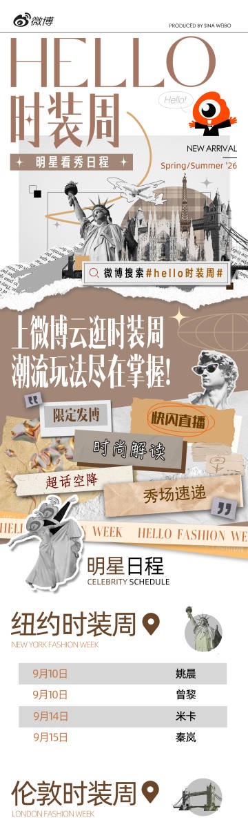 #时装周明星看秀日程表##hello时装周# 2026春夏四大时装周明星看秀日程出炉!快来锁定你最期待的TA,在微博云逛时装周,潮流玩法尽在掌握!