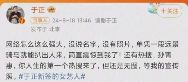 于正新签约女艺人背后的故事:网暴与清白的较量