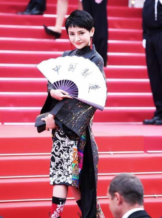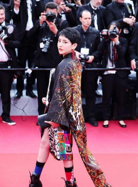 戛纳红毯,李宇春穿一身羽毛亮相,网红毛毛姐缺点一览无余