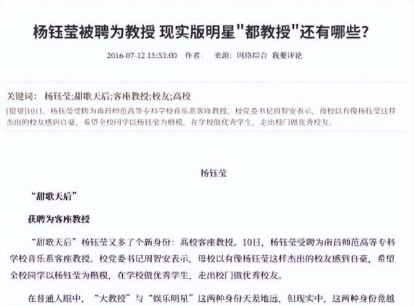 一时间,杨钰莹从歌曲舞台上的全民偶像,变成了课堂上的争议中心。网上有声音说:“她能把一首歌唱甜,但未必能教出有深度的学生。”甚至有人质疑,如果她都能称教授,那是不是以后所有拥有光鲜履历的明星都能走上教席呢?
